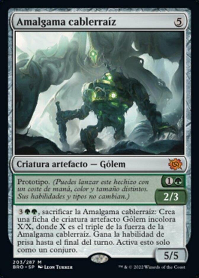 | Rules | Prototype — 2/3 (You may cast this spell with different mana cost, color, and size. It keeps its abilities and types.) , Sacrifice Rootwire Amalgam: Create an X/X colorless Golem artifact creature token, where X is three times Rootwire Amalgam's power. It gains haste until end of turn. Activate only as a sorcery. |