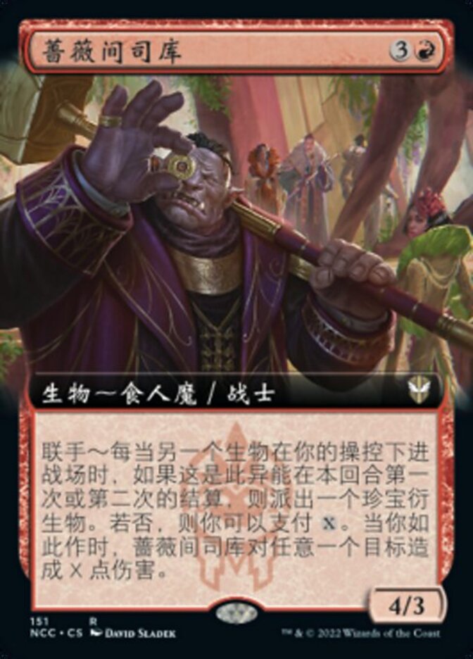 | Rules | Alliance — Whenever another creature enters the battlefield under your control, create a Treasure token if this is the first or second time this ability has resolved this turn. Otherwise, you may pay . When you do, Rose Room Treasurer deals X damage to any target. |