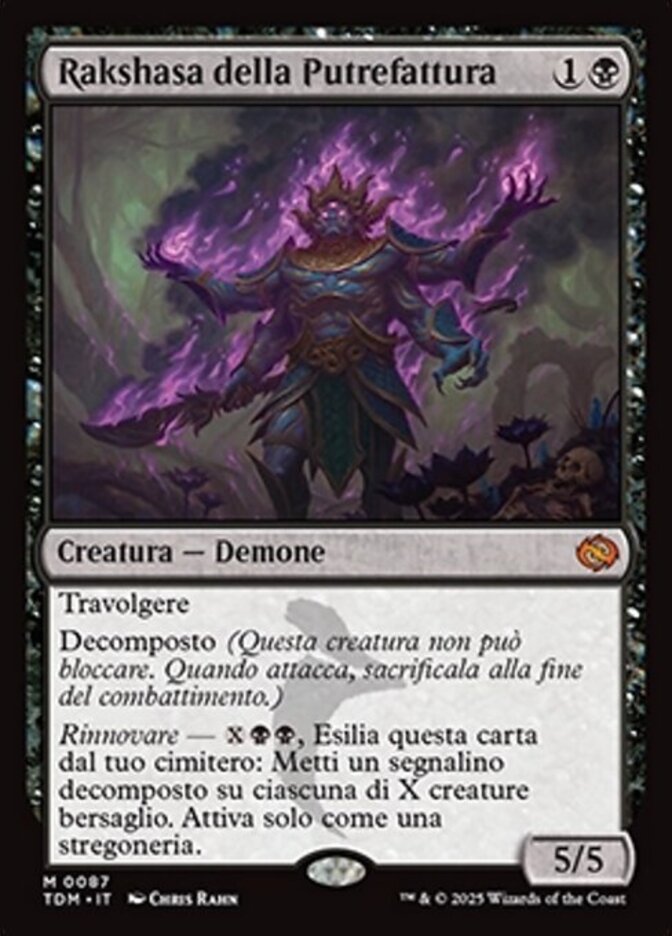 | Rules | Trample Decayed (This creature can't block. When it attacks, sacrifice it at end of combat.) Renew — , Exile this card from your graveyard: Put a decayed counter on each of X target creatures. Activate only as a sorcery. |