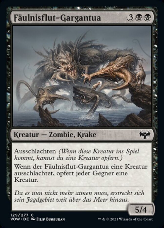 | Rules | Exploit (When this creature enters the battlefield, you may sacrifice a creature.) When Rot-Tide Gargantua exploits a creature, each opponent sacrifices a creature. |