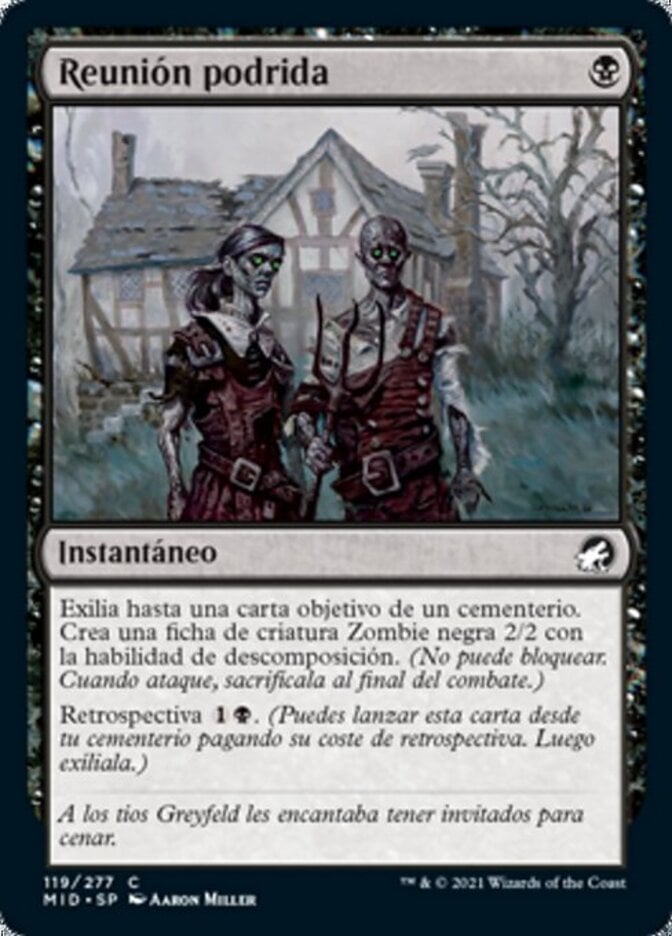 | Rules | Exile up to one target card from a graveyard. Create a 2/2 black Zombie creature token with decayed. (It can't block. When it attacks, sacrifice it at end of combat.) Flashback (You may cast this card from your graveyard for its flashback cost. Then exile it.) |
