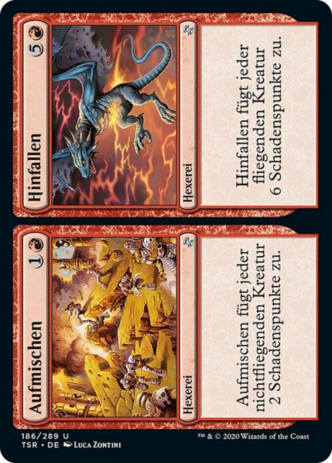 | Rules | Rough deals 2 damage to each creature without flying. // Tumble deals 6 damage to each creature with flying. |