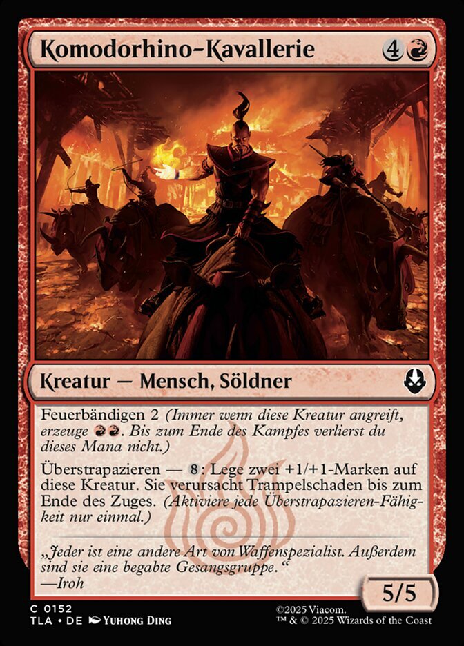 | Rules | Firebending 2 (Whenever this creature attacks, add . This mana lasts until end of combat.) Exhaust — : Put two +1/+1 counters on this creature. It gains trample until end of turn. (Activate each exhaust ability only once.) |