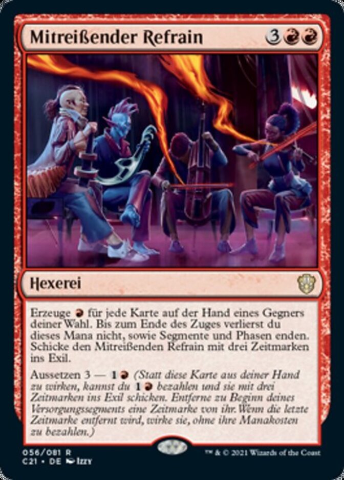 | Rules | Add for each card in target opponent's hand. Until end of turn, you don't lose this mana as steps and phases end. Exile Rousing Refrain with three time counters on it. Suspend 3— (Rather than cast this card from your hand, you may pay and exile it with three time counters on it. At the beginning of your upkeep, remove a time counter. When the last is removed, cast it without paying its mana cost.) |