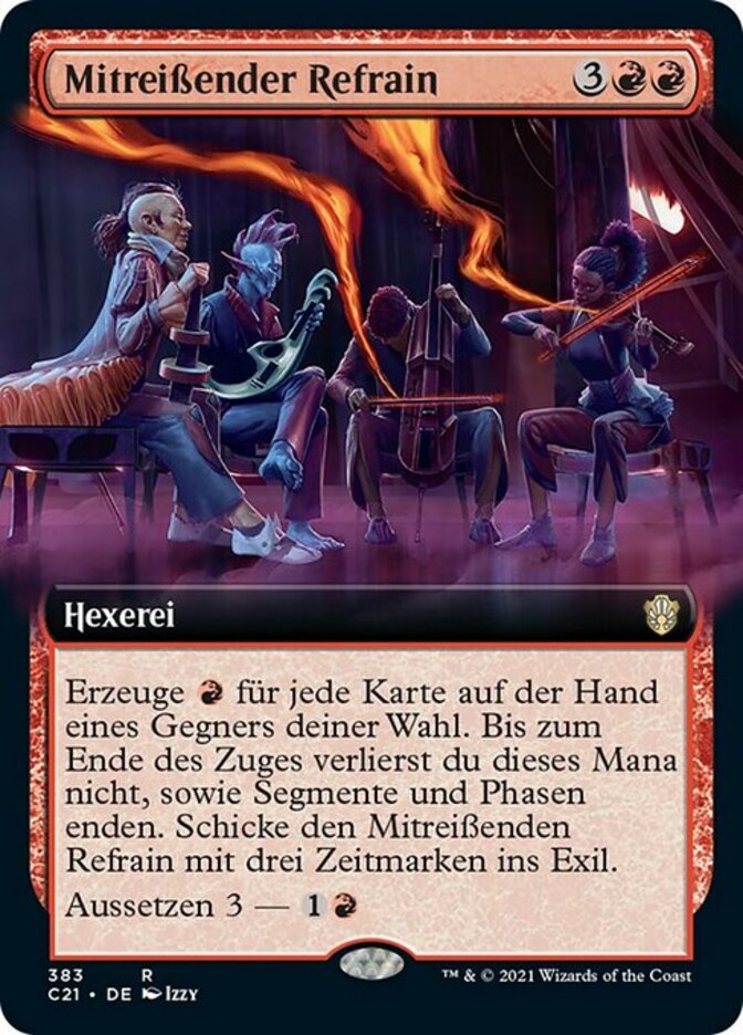 | Rules | Add for each card in target opponent's hand. Until end of turn, you don't lose this mana as steps and phases end. Exile Rousing Refrain with three time counters on it. Suspend 3— (Rather than cast this card from your hand, you may pay and exile it with three time counters on it. At the beginning of your upkeep, remove a time counter. When the last is removed, cast it without paying its mana cost.) |