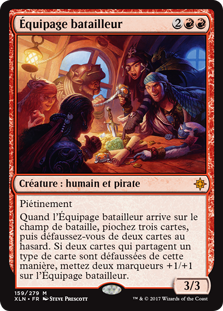 | Rules | Trample When Rowdy Crew enters the battlefield, draw three cards, then discard two cards at random. If two cards that share a card type are discarded this way, put two +1/+1 counters on Rowdy Crew. |