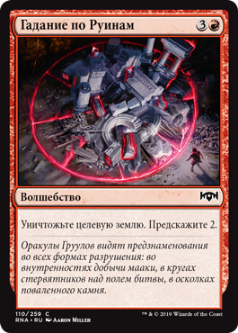 | Flavor | Gruul oracles see omens in all forms of destruction: the entrails of a maaka's prey, the flight of vultures over a battlefield, the scattering of toppled stone. |