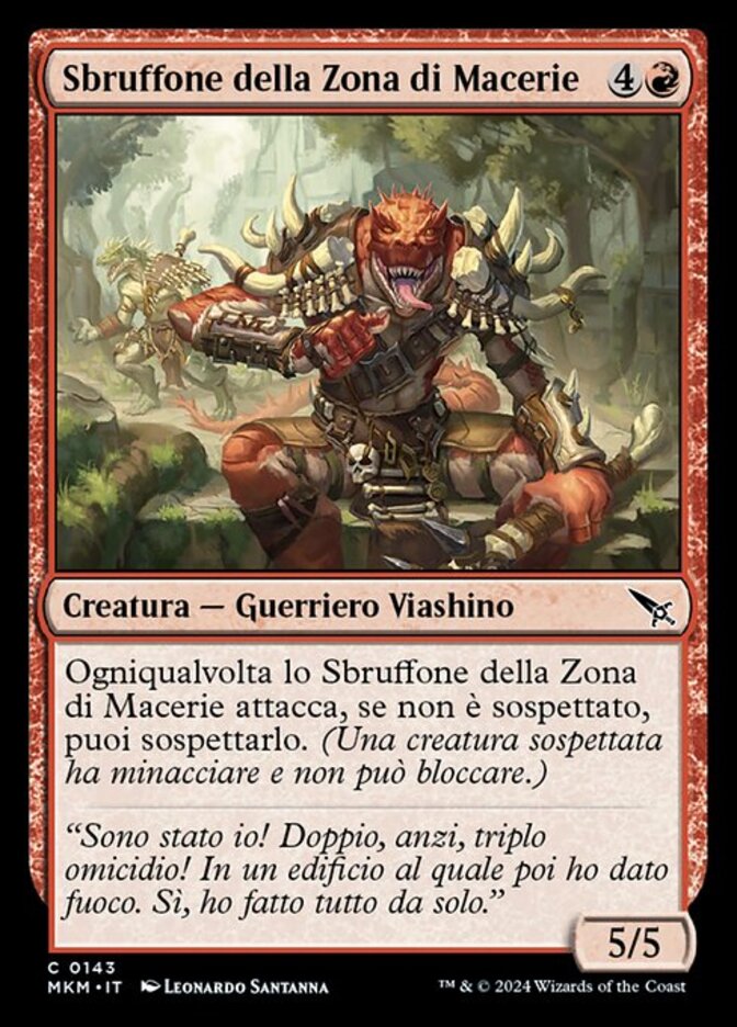 Rules Whenever Rubblebelt Braggart attacks, if it's not suspected, you may suspect it. (A suspected creature has menace and can't block.)