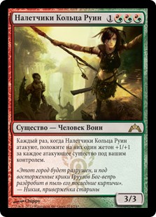| Rules | Whenever Rubblebelt Raiders attacks, put a +1/+1 counter on it for each attacking creature you control. |