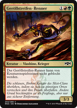 | Rules | Rubblebelt Runner can't be blocked by creature tokens. |