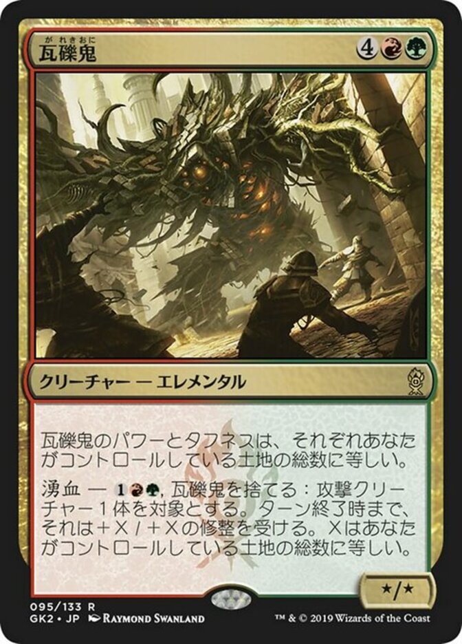 | Rules | Rubblehulk's power and toughness are each equal to the number of lands you control. Bloodrush — , Discard Rubblehulk: Target attacking creature gets +X/+X until end of turn, where X is the number of lands you control. |