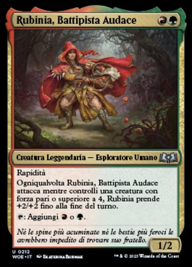 | Rules | Haste Whenever Ruby, Daring Tracker attacks while you control a creature with power 4 or greater, Ruby gets +2/+2 until end of turn. : Add or . |