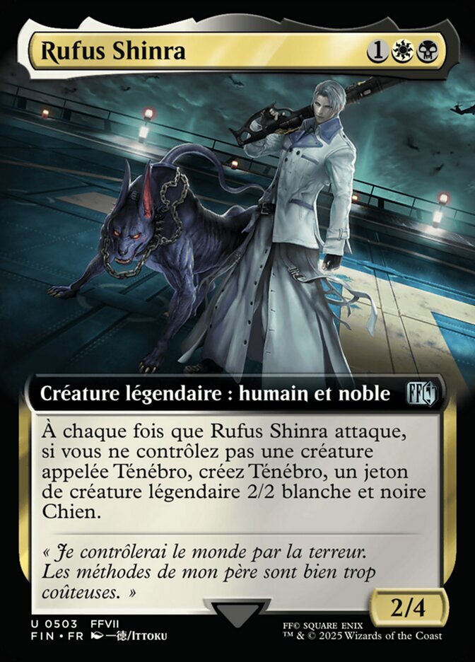 | Rules | Whenever Rufus Shinra attacks, if you don't control a creature named Darkstar, create Darkstar, a legendary 2/2 white and black Dog creature token. |