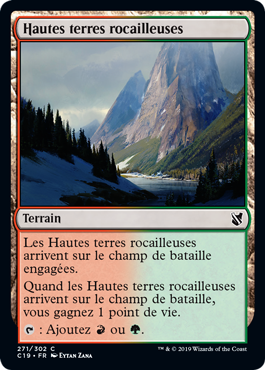 | Rules | Rugged Highlands enters the battlefield tapped. When Rugged Highlands enters the battlefield, you gain 1 life. : Add or . |