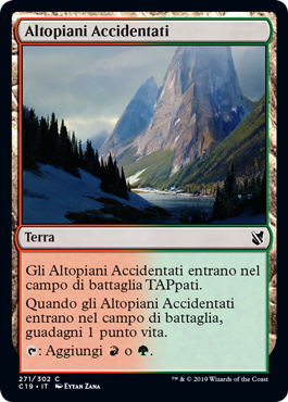 | Rules | Rugged Highlands enters the battlefield tapped. When Rugged Highlands enters the battlefield, you gain 1 life. : Add or . |