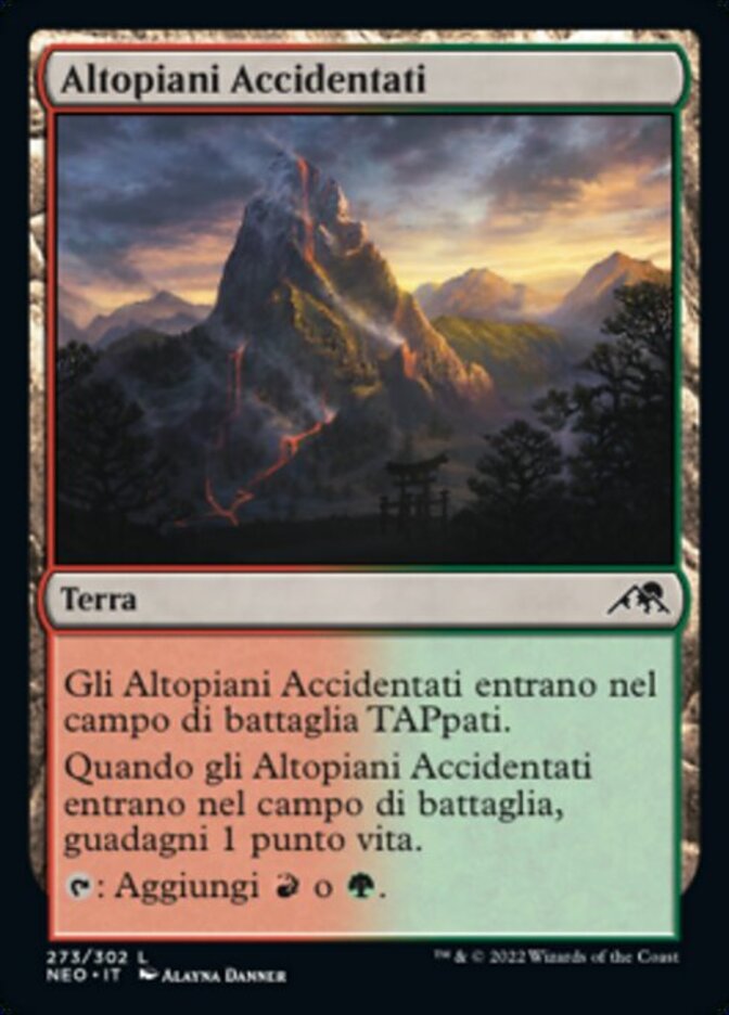 | Rules | Rugged Highlands enters the battlefield tapped. When Rugged Highlands enters the battlefield, you gain 1 life. : Add or . |