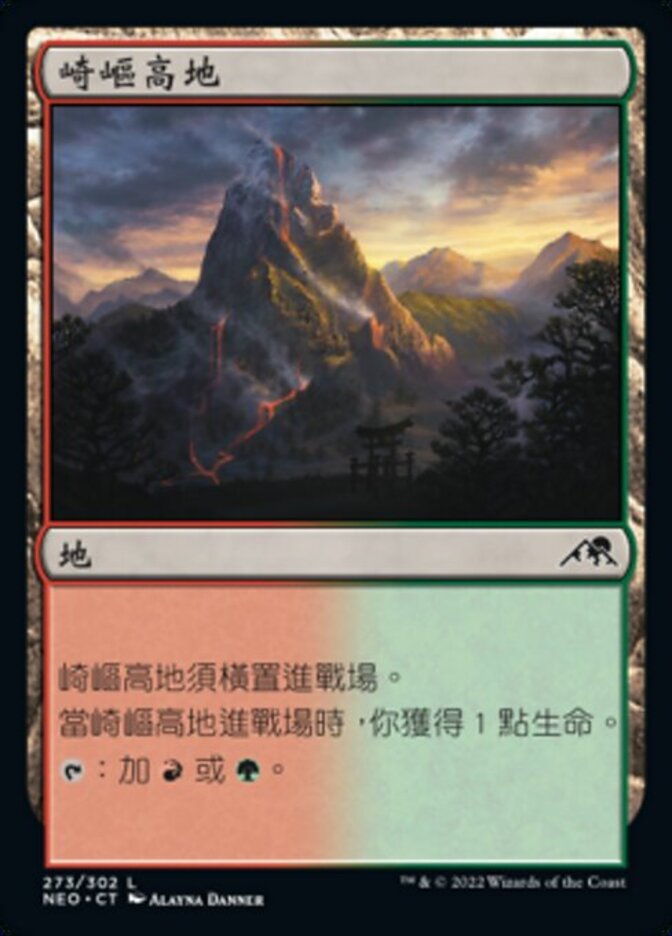 | Rules | Rugged Highlands enters the battlefield tapped. When Rugged Highlands enters the battlefield, you gain 1 life. : Add or . |