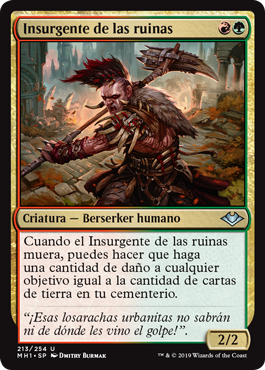| Rules | When Ruination Rioter dies, you may have it deal damage to any target equal to the number of land cards in your graveyard. |