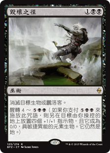 | Rules | Destroy target creature or planeswalker. Awaken 4— (If you cast this spell for , also put four +1/+1 counters on target land you control and it becomes a 0/0 Elemental creature with haste. It's still a land.) |