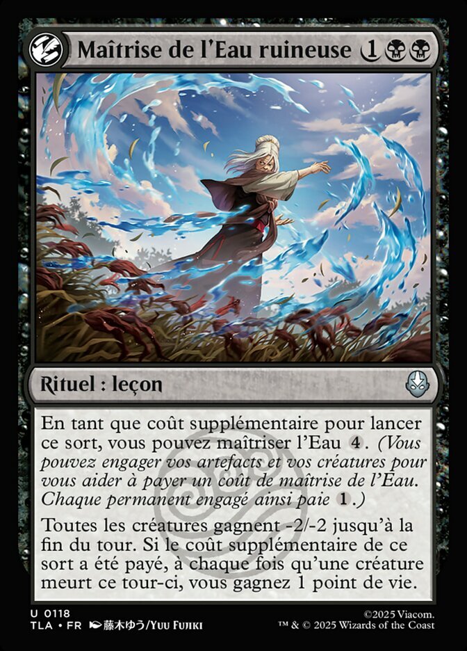 | Rules | As an additional cost to cast this spell, you may waterbend . (While paying a waterbend cost, you can tap your artifacts and creatures to help. Each one pays for .) All creatures get -2/-2 until end of turn. If this spell's additional cost was paid, whenever a creature dies this turn, you gain 1 life. |