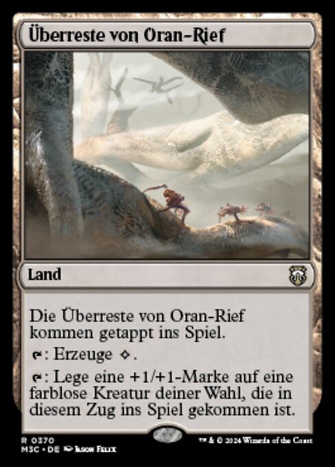 | Rules | Ruins of Oran-Rief enters the battlefield tapped. : Add . ( represents colorless mana.) : Put a +1/+1 counter on target colorless creature that entered the battlefield this turn. |