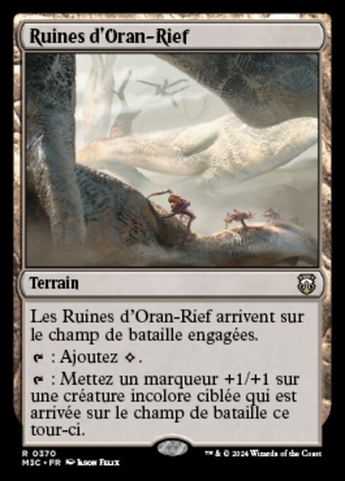 | Rules | Ruins of Oran-Rief enters the battlefield tapped. : Add . ( represents colorless mana.) : Put a +1/+1 counter on target colorless creature that entered the battlefield this turn. |