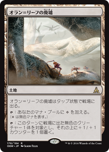 | Rules | Ruins of Oran-Rief enters the battlefield tapped. : Add . ( represents colorless mana.) : Put a +1/+1 counter on target colorless creature that entered the battlefield this turn. |
