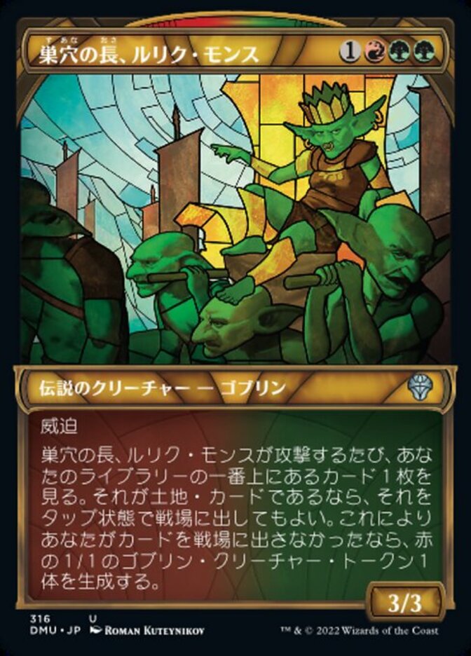 | Rules | Menace (This creature can't be blocked except by two or more creatures.) Whenever Rulik Mons, Warren Chief attacks, look at the top card of your library. If it's a land card, you may put it onto the battlefield tapped. If you didn't put a card onto the battlefield this way, create a 1/1 red Goblin creature token. |