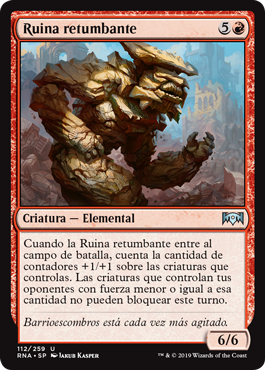 | Rules | When Rumbling Ruin enters the battlefield, count the number of +1/+1 counters on creatures you control. Creatures your opponents control with power less than or equal to that number can't block this turn. |