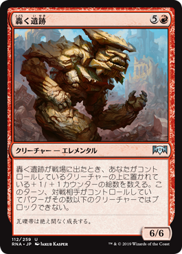 | Rules | When Rumbling Ruin enters the battlefield, count the number of +1/+1 counters on creatures you control. Creatures your opponents control with power less than or equal to that number can't block this turn. |