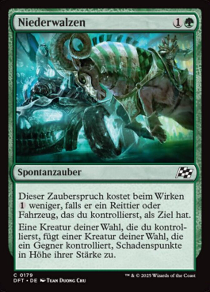 | Rules | This spell costs less to cast if it targets a Mount or Vehicle you control. Target creature you control deals damage equal to its power to target creature an opponent controls. |