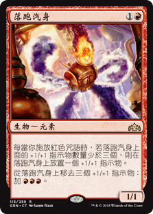 | Rules | Whenever you cast a red spell, if Runaway Steam-Kin has fewer than three +1/+1 counters on it, put a +1/+1 counter on Runaway Steam-Kin. Remove three +1/+1 counters from Runaway Steam-Kin: Add . |