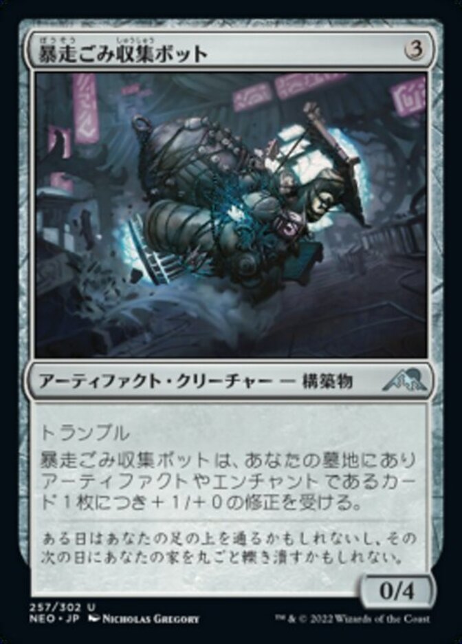 Runaway Trash-Bot gets +1/+0 for each artifact and/or enchantment card in your graveyard.