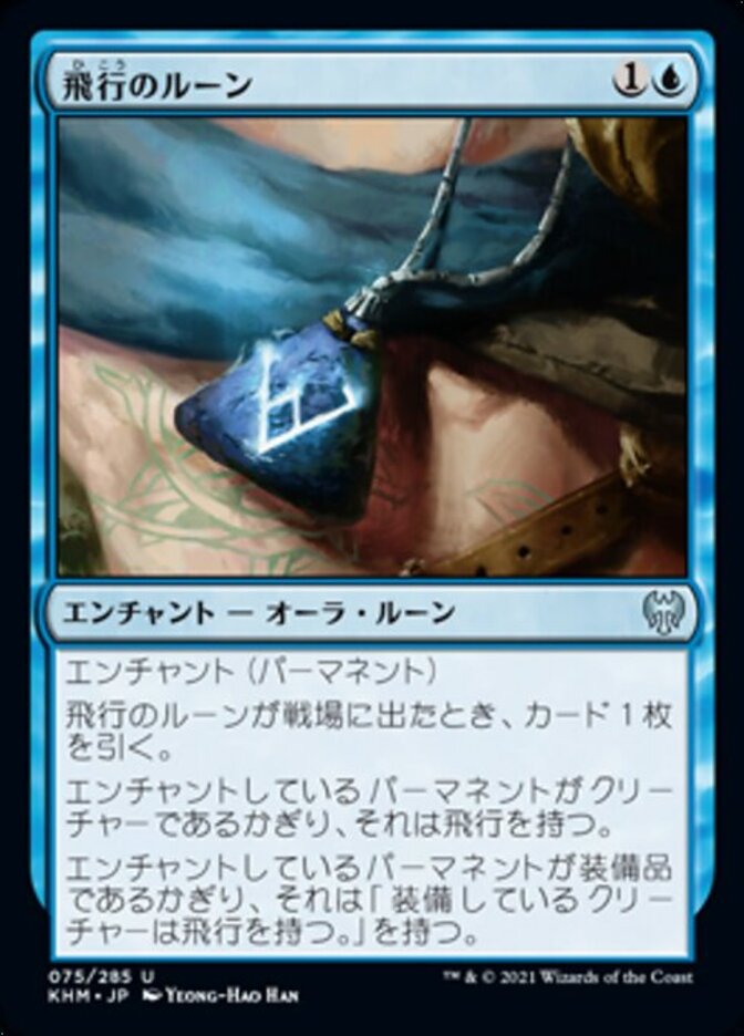 | Rules | Enchant permanent When Rune of Flight enters the battlefield, draw a card. As long as enchanted permanent is a creature, it has flying. As long as enchanted permanent is an Equipment, it has "Equipped creature has flying." |