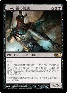 | Rules | Flying When Rune-Scarred Demon enters the battlefield, search your library for a card, put it into your hand, then shuffle. |