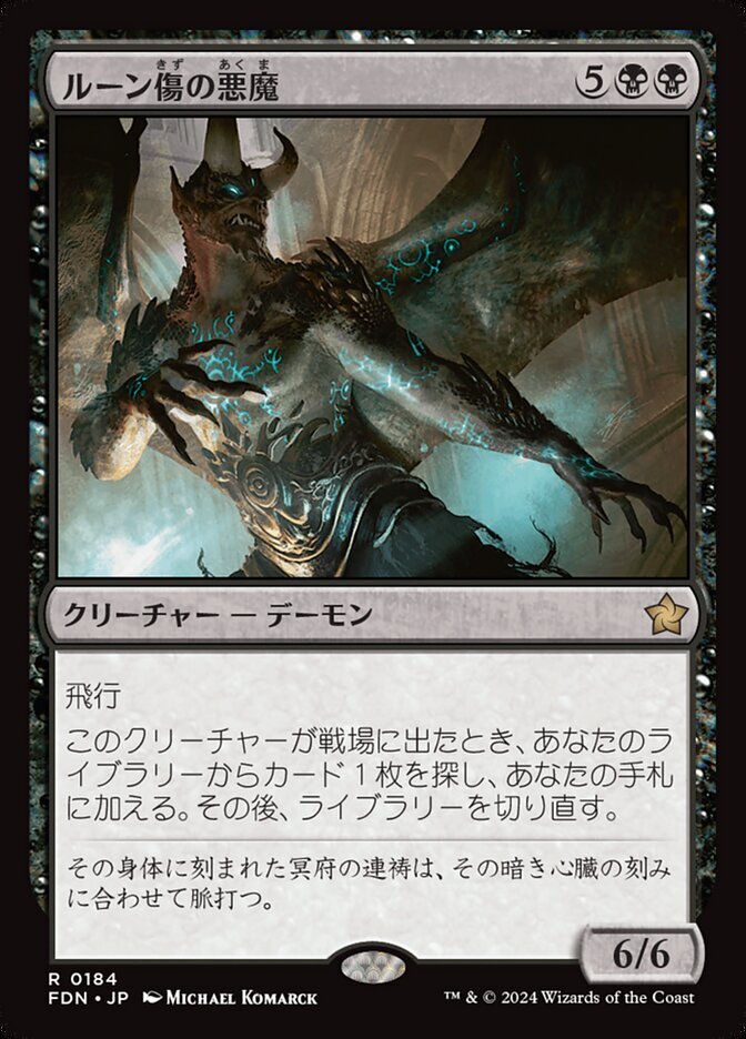 | Rules | Flying When Rune-Scarred Demon enters the battlefield, search your library for a card, put it into your hand, then shuffle. |