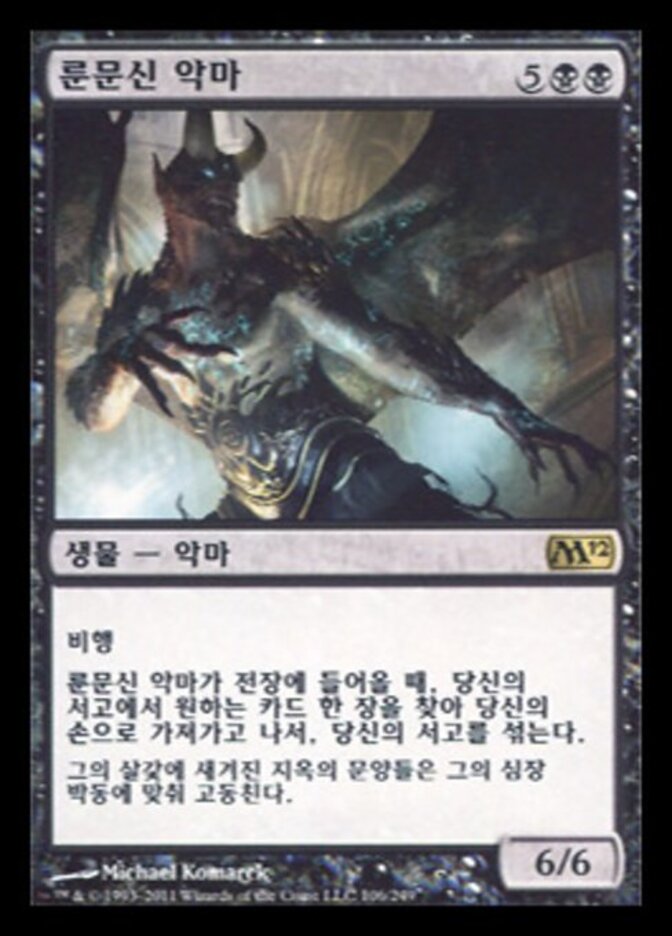 When Rune-Scarred Demon enters the battlefield, search your library for a card, put it into your hand, then shuffle.