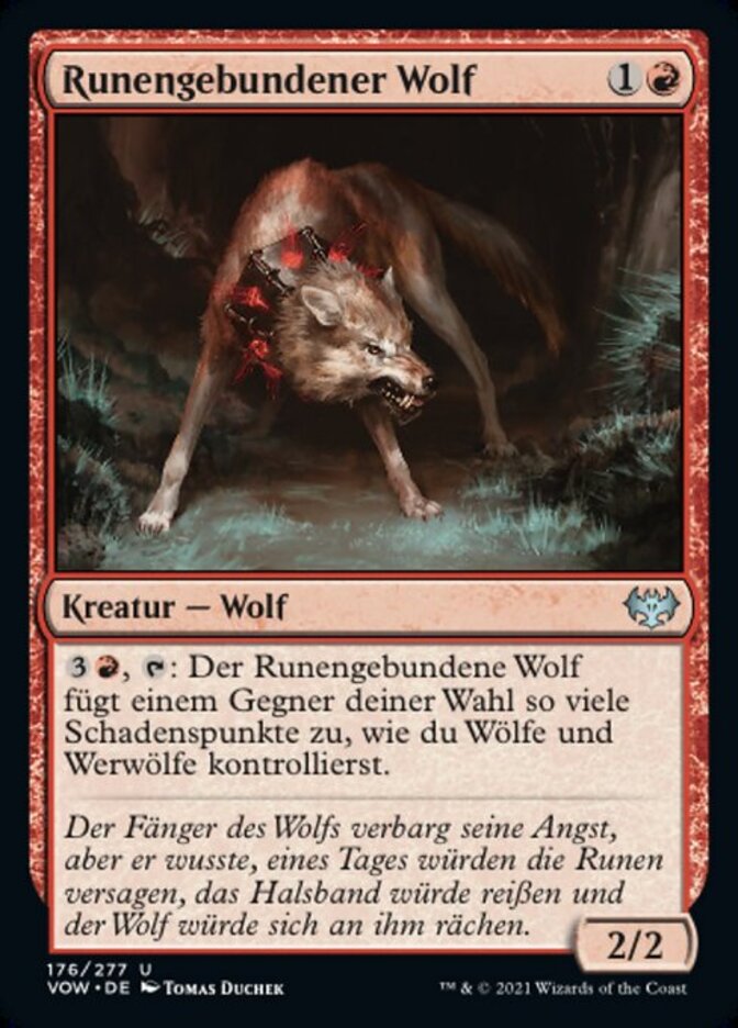 Languages Runebound Wolf Lobo preso de runas Lupo dal Collare di Rune Loup entraverune 룬으로 구속된 늑대 符锢狼 ルーン縛りの狼 Руносвязанный Волк Lobo da Coleira Rúnica Runengebundener Wolf 符錮狼