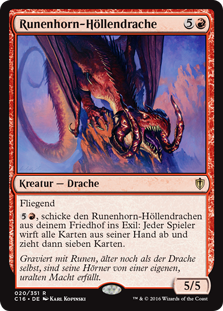 | Rules | Flying , Exile Runehorn Hellkite from your graveyard: Each player discards their hand, then draws seven cards. |