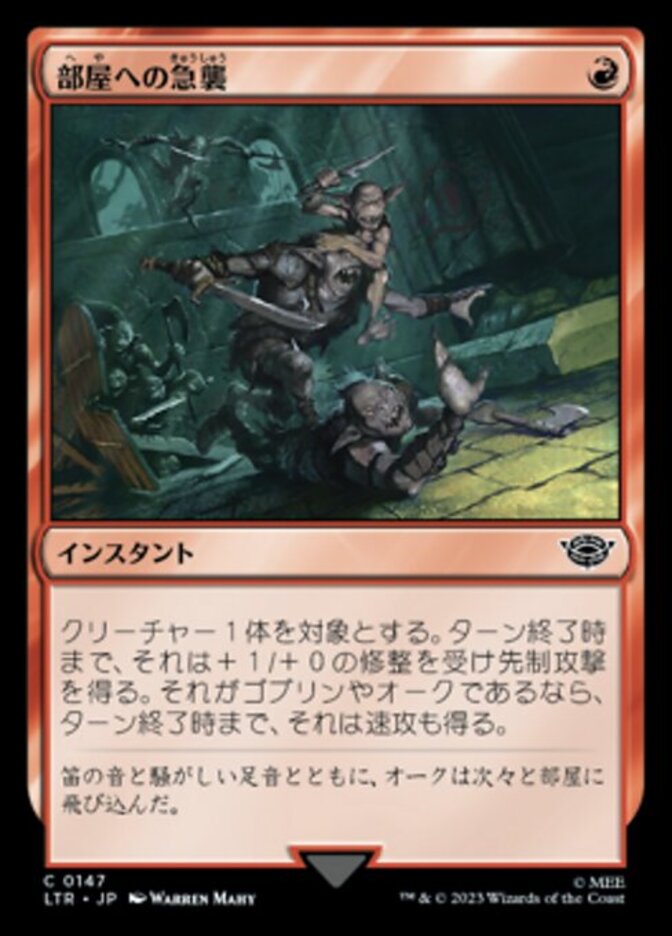 | Flavor | There was a horn-blast and a rush of feet, and Orcs one after another leaped into the chamber. |