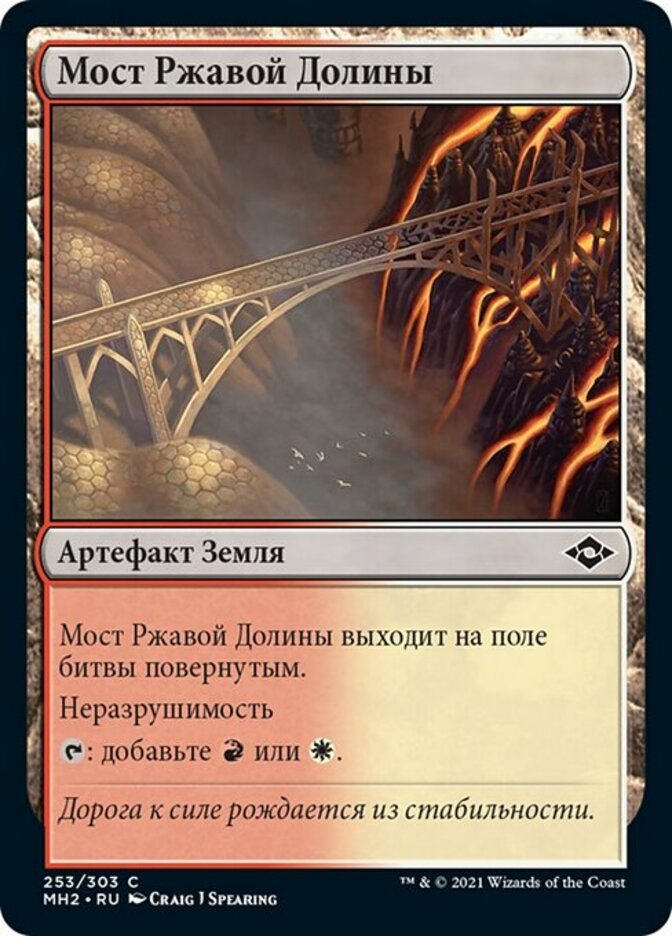 | Rules | Rustvale Bridge enters the battlefield tapped. Indestructible : Add or . |