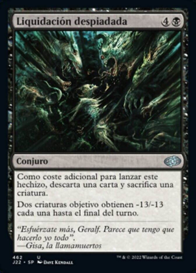 | Rules | As an additional cost to cast this spell, discard a card and sacrifice a creature. Two target creatures each get -13/-13 until end of turn. |