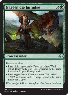 | Rules | Choose one — • Target nonattacking creature gains reach and deathtouch until end of turn. Untap it. • Target attacking creature gets +2/+2 and gains trample until end of turn. |