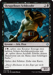 | Rules | , Sacrifice a creature: Create two Treasure tokens. (They're artifacts with ", Sacrifice this artifact: Add one mana of any color.") Sacrifice three Treasures: Draw a card. |