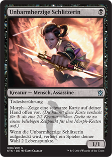 | Rules | Deathtouch Morph—Reveal a black card in your hand. (You may cast this card face down as a 2/2 creature for . Turn it face up any time for its morph cost.) When Ruthless Ripper is turned face up, target player loses 2 life. |