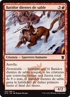 | Rules | Trample Formidable — Whenever Sabertooth Outrider attacks, if creatures you control have total power 8 or greater, Sabertooth Outrider gains first strike until end of turn. |