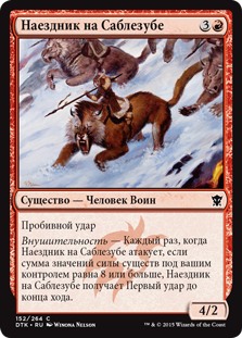 | Rules | Trample Formidable — Whenever Sabertooth Outrider attacks, if creatures you control have total power 8 or greater, Sabertooth Outrider gains first strike until end of turn. |