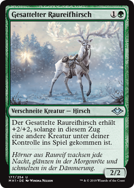 Languages Saddled Rimestag 備鞍霜角鹿 Gesattelter Raureifhirsch Cerf des frimas sellé Brinocervo Sellato 鞍載せ霧氷鹿 안장을 올린 서리수사슴 Cervo-das-geadas Selado Оседланный Олень Инея 备鞍霜角鹿 Cuernoescarcha ensillado