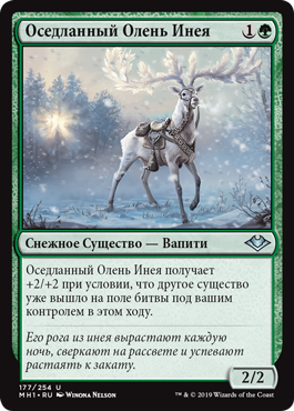| Rules | Saddled Rimestag gets +2/+2 as long as you had another creature enter the battlefield under your control this turn. |