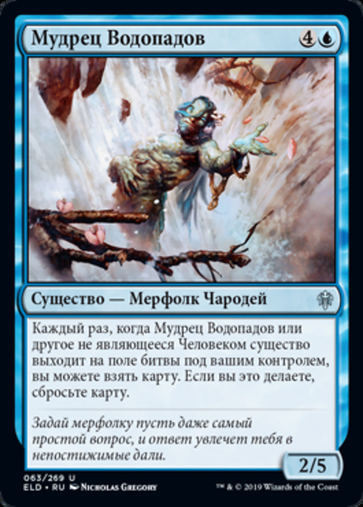 | Rules | Whenever Sage of the Falls or another non-Human creature enters the battlefield under your control, you may draw a card. If you do, discard a card. |